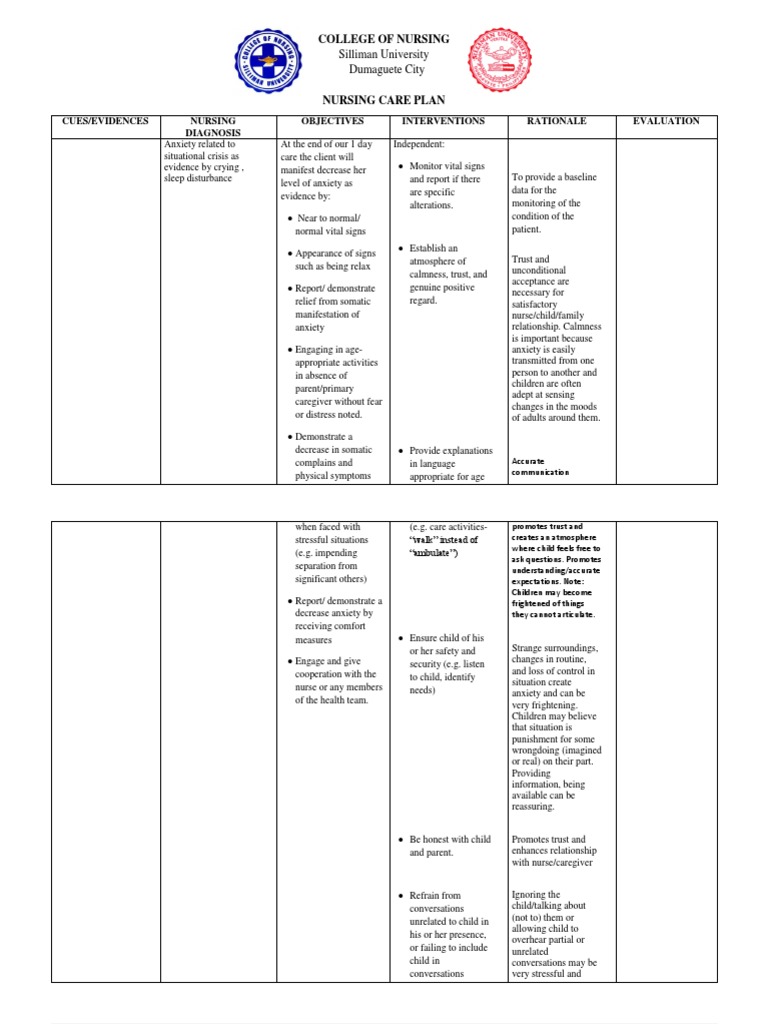 Ncp Situational Low Self Esteem Stress Biology Medical from imgv2-1-f.scribdassets.com Savesave nursingcrib.com nursing care plan mild anxiety for later. Nursing care plan for anxiety and panic. The nurse will evaluate patient relaxation. A feeling of apprehension caused by anticipation of danger. Nursing care plan for anxiety with rationales. Stress and anxiety nursing care plan & management. Download as pdf, txt or read online from scribd. Know the nursing interventions and rationales.